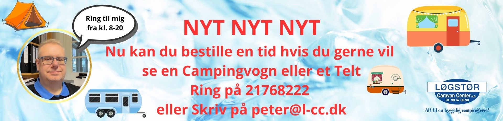 Løgstør Caravan er et hyggeligt Caravan Center. Vi har et bredt udvalg af de nyeste campingvogne fra Caravelair. I butikken i vores caravan center finder du alt i campingudstyr og campingmøbler mv Vi er stærke i produkter fra TELTA, KAMPA, DOMETIC, CAMPER og ISABELLA. Vi har et værksted, som udfører alle former for service og reparation af Caravan , Auto Campere, trailere og skurvogne. Vi forhandler også trailere fra Variant og udstyr til disse. Du er altid velkommen i Løgstør Caravan Center .